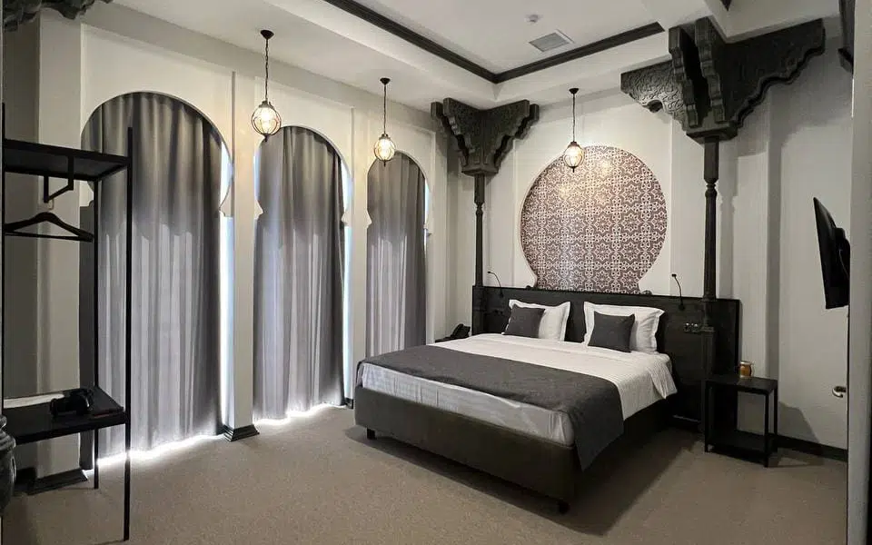 Наш Отель расположен по улице МКАТ, 50 Юнусабадского района и находится на расстоянии 4 км от центра Ташкента включает в себя: - 19 номера, каждый из которых оснащен современным оборудованием, включая кондиционирование, телефон, WiFi Интернет, электронный сейф, интернет-телевидение, мини бар и фен. - Конференц-зал, вместимостью до 30 человек оснащен современным оборудованием с учетом самых последних требований и стандартов. - Ресторан «RASODA». Квалифицированный персонал ресторана предлагает Вам лучший ассортимент блюд и сервисное обслуживание. - Бар «RASODA». Широкий ассортимент прохладительных и горячих напитков. - Бесплатная Автостоянка для автомобилей.